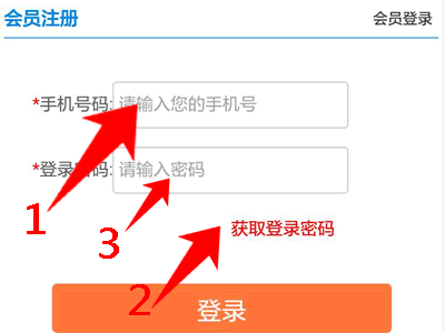 3.下一步,输入手机号,点获取密码,然后将得到的手机短信里面的密码输入登录框,然后点登录;
